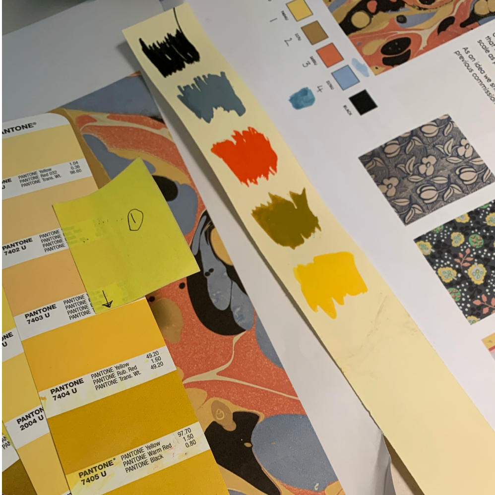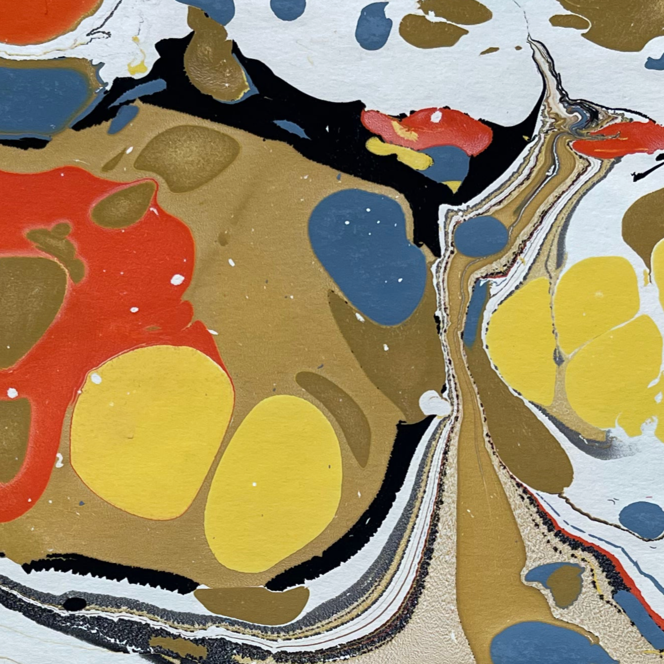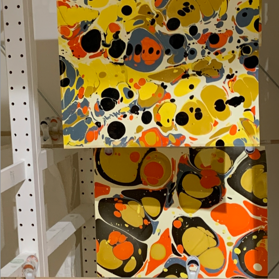 Hand marbled papers have come a long way since they were first developed in Asia during the 12th century. Modern artists have pushed boundaries creating a vibrant and exciting Art form. The bold colors and organic forms from our research at the Thomas.J.Watson library inspired us to collaborate once again with the creative studio that brought you Kaleidescope from our first collection. We are thrilled with the result.